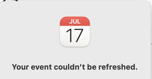 Calendar Error: Your Event Couldn’t Be Refreshed. The Calendar Was Not